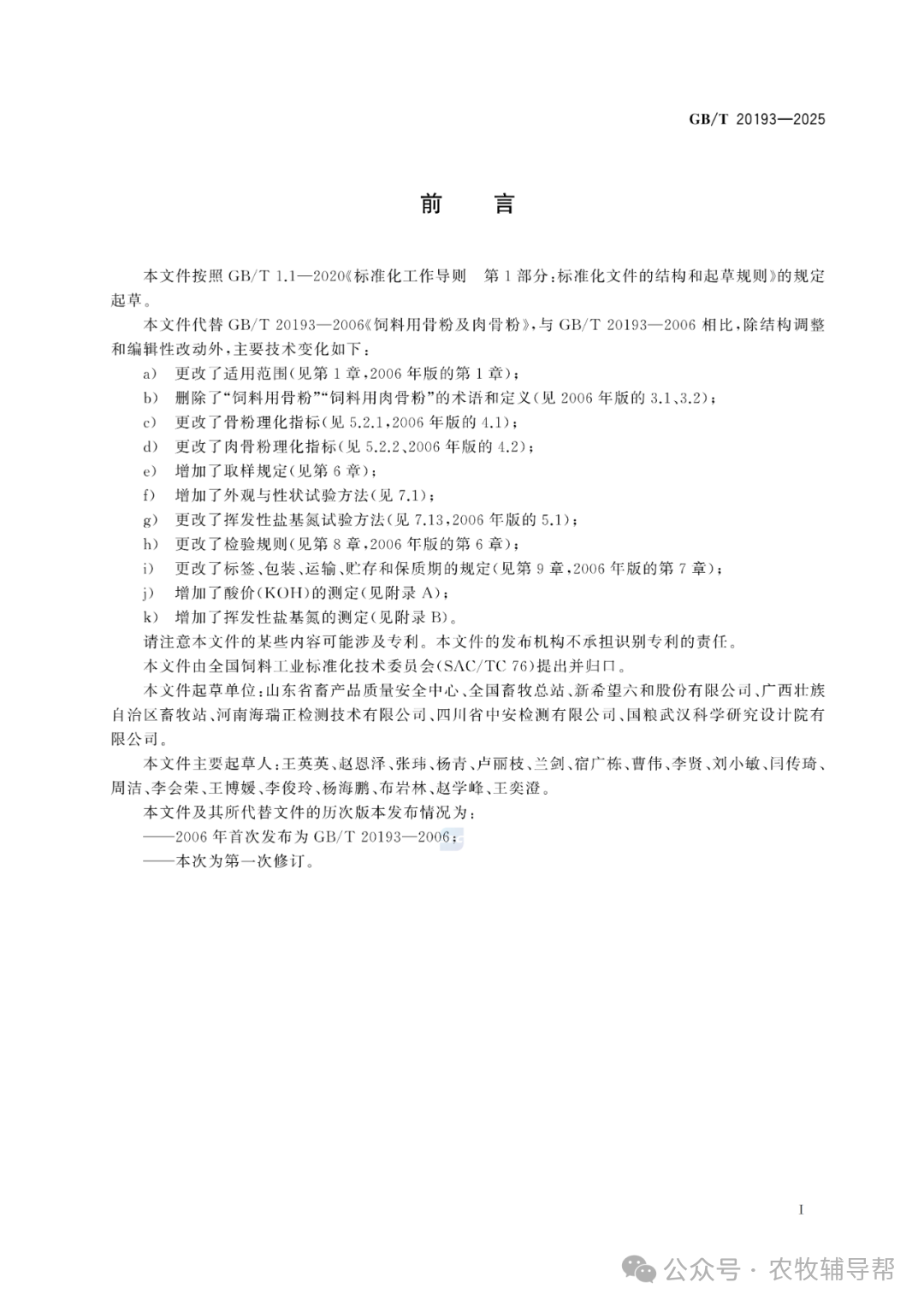 導語:代替GB/T 20193-2006《飼料用骨粉及肉骨粉》