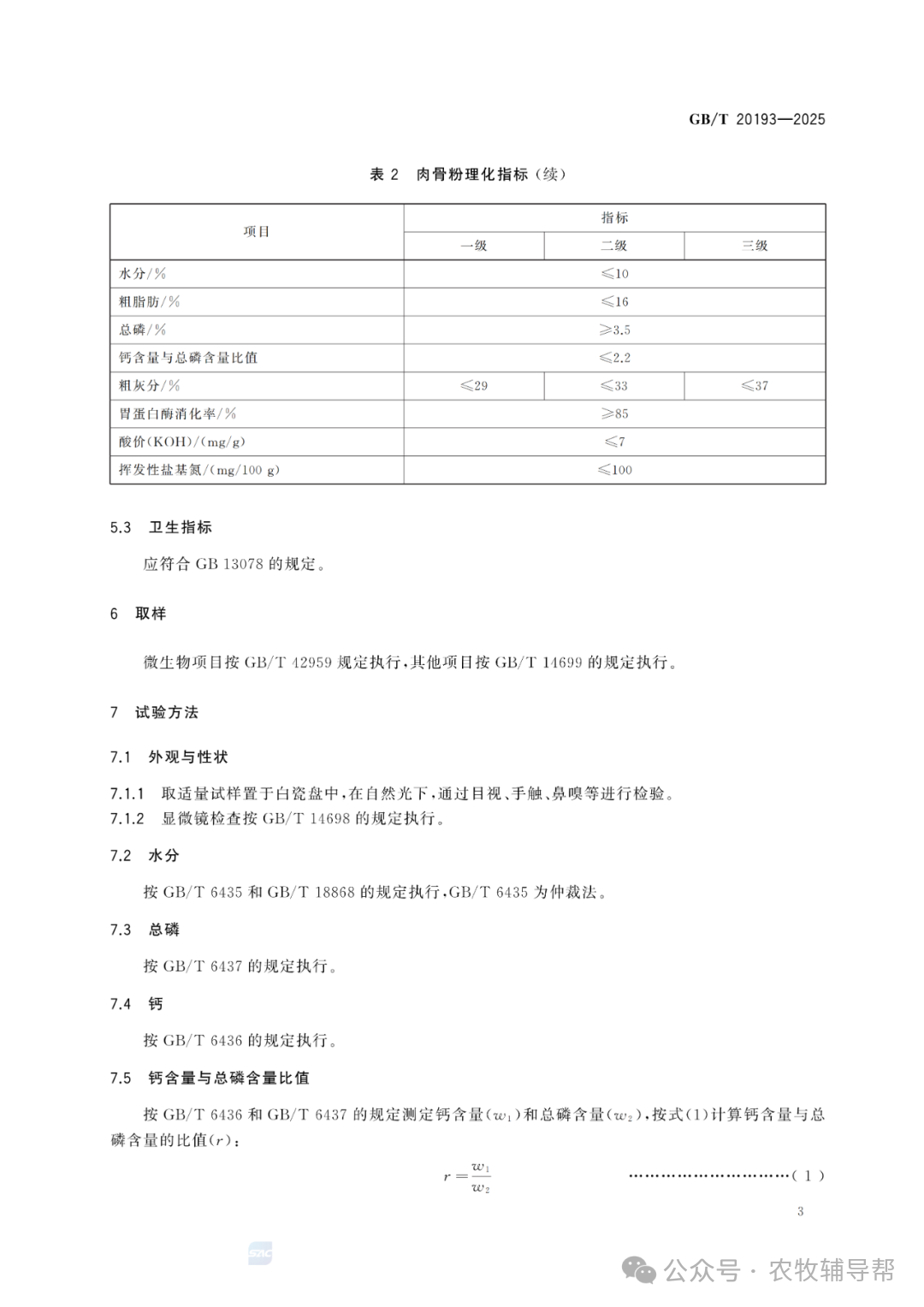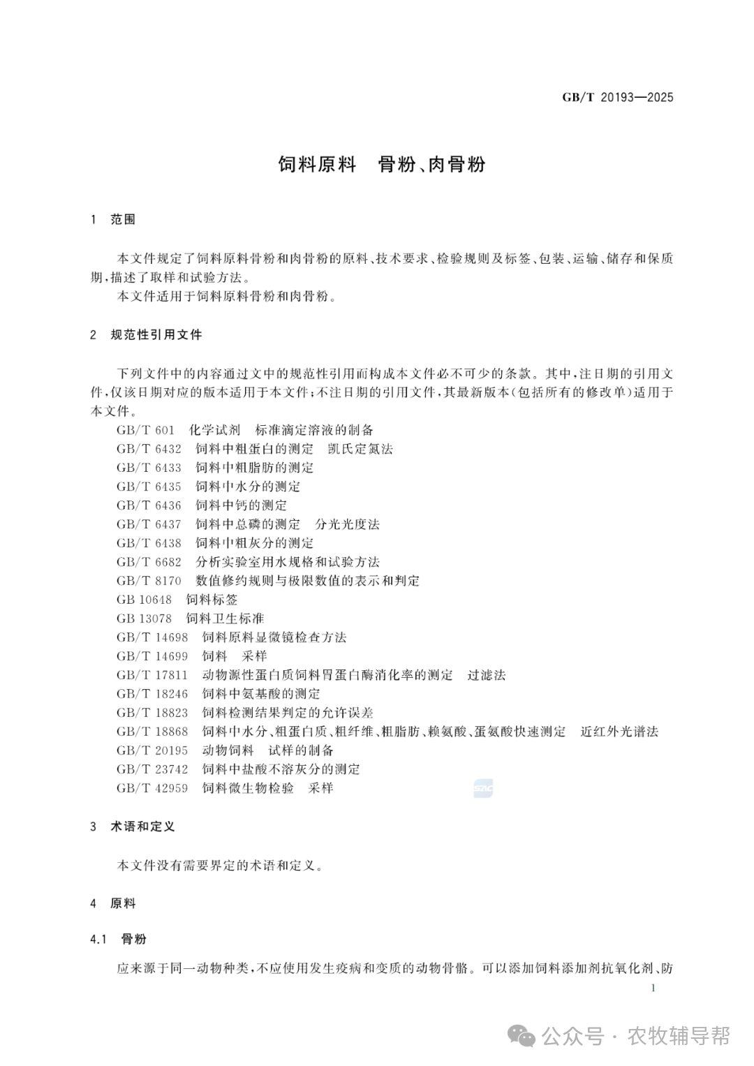 將實施GB/T 20193-2025 飼料原料 骨粉、肉骨粉