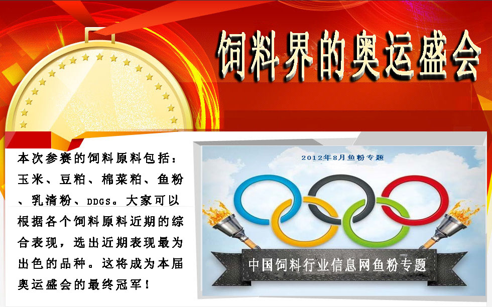 在歐債危機未除、國際經濟有氣無力,特別是歐洲各國吵嚷不休之際,2012年7月28日(北京時間)倫敦奧運會正式開幕。世人總算可以用另外一個眼光來關注歐洲,即使只有短短兩個禮拜的時間也好。奧運開幕之后,各個國家運動員的表現成為全世界聚焦的目標,金牌無疑成為運動健兒們追逐的目標之一。那么,讓我們將奧運精神發揮到我們的飼料行業中來,放眼我們的飼料原料,哪種原料能取得我們手中的這塊金牌?