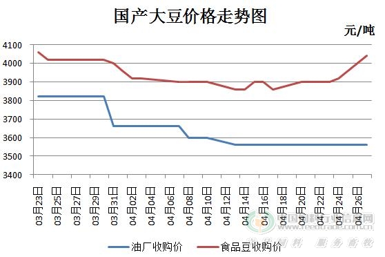 前期豆農開始準備春播時,急于出售手中持有的大豆,準備資金進行春播,價格一跌再跌,跌破成本線。但是并沒有因為價格的下跌而使得市場購銷活躍,反而購銷一直處于清淡行情。而當下進入春播,大豆市場弱勢行情開始有所改觀。農戶轉變心態,由于市場價格與預期的差距太大,導致農戶惜售心態不斷增強,中間貿易商的收購壓力也不斷增大,貿易主體備貨意愿有所增強,加之產區糧庫小幅上調大豆收購價格,從而支撐市場價格有所上漲。