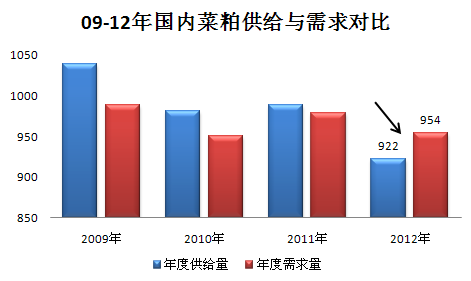 原因之一:12年供需缺口嚴重,13年菜粕供應青黃不接