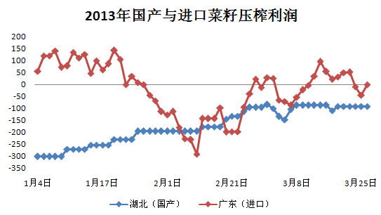 原因之二:國內菜籽壓榨虧損嚴重,進口油菜籽價格高企