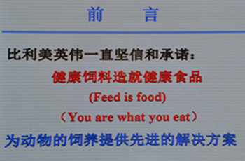 周東勝:可以說,此次會議在技術研發方面沒做任何特殊準備,因為我們一直都在做這方面的工作。此次會議應該說是我們在技術研發方面的階段性成果匯報。比利美英偉一直堅信和承諾:健康飼料造就健康食品,這是我們的理念,我們所有的技術研發工作都圍繞著健康飼料促進豬群健康水平這一方向進行。關于豬病問題,養豬企業更多是要通過促進豬群健康水平,提高生產效率;作為我們飼料企業應該協助養豬企業提高豬群的健康水平,雙方才能可持續發展。豬場作為企業,必須承擔起相應的社會責任,特別是環境保護問題,豬場環保已成為政府強制的行政手段,養豬企業必須遵守執行。因此,此次會議也把“豬病和排污”問題提上日程。
