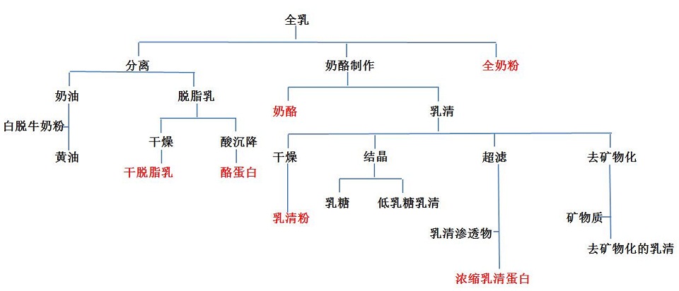 2、根據脫鹽與否可分為非脫鹽乳清粉和脫鹽乳清粉 3、根據蛋白分離程度可分為高、中、低蛋白乳清粉 |