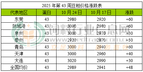 國內近期進口大豆到港數量較多,緩解市場對后期供應短缺的擔憂。目前油廠開工率維持在高位,豆粕產量較大。隨著進口大豆成本上漲導致壓榨虧損加劇,且傳統養殖需求旺季令豆粕需求增加,加強了油廠對豆粕的挺價意愿,價格出現上漲行情。據飼料行業信息網統計數據顯示,沿海地區43%蛋白豆粕價格為2989元/噸,較上一周上漲48元/噸。隨著后期大豆到港下降后庫存繼續消耗,豆粕供應寬松壓力將逐漸消耗,在較強的工廠挺價意愿支撐下,豆粕將延續偏強行情。