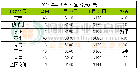 美盤大豆價格上漲帶動進口大豆成本跟隨上行,加之目前正值春節前飼料養殖企業備貨需求旺季,提貨數量高于油廠壓榨大豆后產生的豆粕數量后庫存繼續下滑,增強了油廠對豆粕的提價意愿。不過目前豆粕庫存處于中等偏高水平且大豆供應充裕的情況下,下游繼續拿貨數量有限令豆粕價格出現窄幅波動行情。據飼料行業信息網統計數據顯示,沿海地區43%蛋白豆粕價格為3140元/噸,較上一周下跌4元/噸。預計隨著春節臨近且飼料養殖企業備貨接近尾聲,工廠即將面臨停機放假后豆粕需求下降,價格或維持小幅調整走勢。