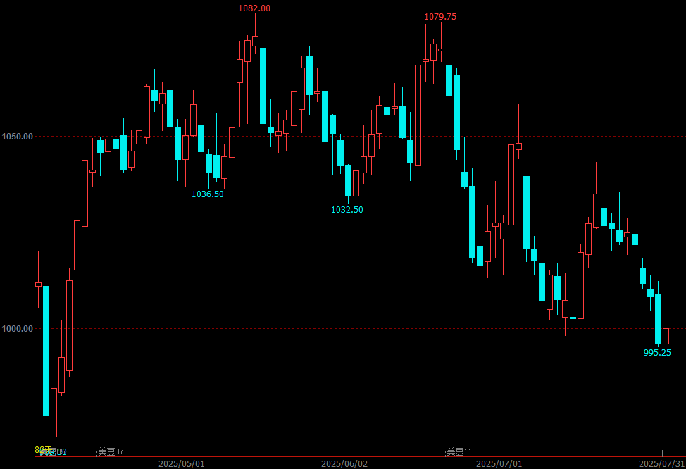 近期美國大豆已經陸續進入關鍵生長期,不過中西部地區的天氣較好,利于大豆生長。據美國農業部作物進展周報顯示,截至7月27日,美國大豆開花率為76%,大豆結莢率為41%,大豆生長優良率為70%,較上一周增加2%,過去一周的降雨已經改善了大豆的生長狀況,并高于2024年同期68%及報告出臺前分析師預期的67%。最新氣象預報顯示,中西部地區的氣溫將會下降,并出現周期性降雨,大多數地區的灌溉條件較好,這增強了人們對美國大豆豐收的預期,令美盤大豆期價繼續下行。