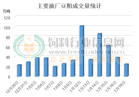 近期國內主要油廠豆粕成交較好,多日出現成交放量,即使近日成交量出現下降,但單日成交量仍維持在20萬噸以上的較好水平。隨著春節的臨近,在畜禽養殖需求較大的情況下飼料養殖場提貨需求較大,很多都安排車輛到工廠提貨,不少工廠還出現了限量提貨的情況,這增強工廠對豆粕的挺價意愿,對價格提供一定的支撐。