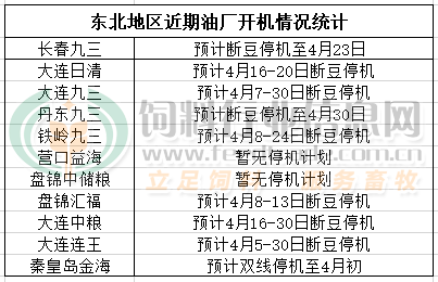 3月中旬開始因中國海關加強對進口巴西大豆船貨中的雜草種子和害蟲檢疫后,導致巴西大豆出口裝船放緩,加之到港的不少南美大豆通關時間延長,部分油廠面臨大豆短缺開始減產停機,等待到港的進口大豆完成通關后才能用于壓榨。不過隨著近日中國同意放寬對巴西大豆船貨的雜草檢疫標準,預計大豆通關速度將會逐漸加快,屆時緊張的油廠大豆將得到補充,不過不少油廠仍出現一段時間大豆消耗完畢或者停機檢修的情況,其中以東北地區最為普遍。