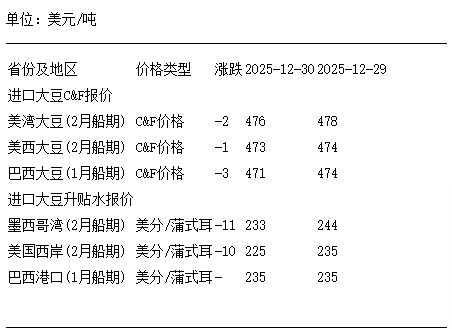 12月30日進口大豆到國內港口C&F及升貼水報價