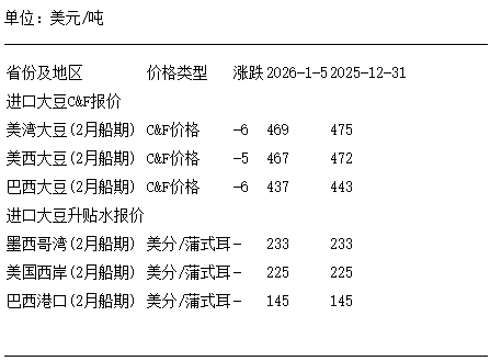 1月5日進口大豆到國內港口C&F及升貼水報價