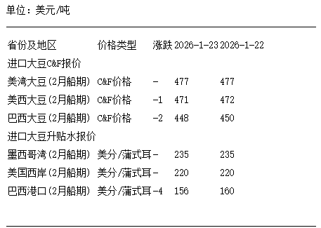 1月23日進口大豆到國內港口C&F及升貼水報價