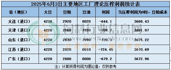 2025年6月3日大豆壓榨利潤日報