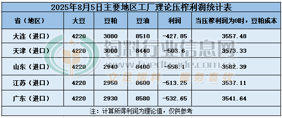 2025年8月5日大豆壓榨利潤日報