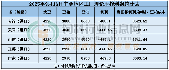 2025年9月16日大豆壓榨利潤日報