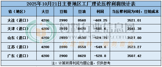 2025年10月21日大豆壓榨利潤日報