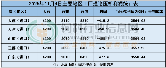 2025年11月4日大豆壓榨利潤日報