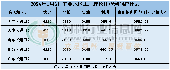 2026年1月6日大豆壓榨利潤日報