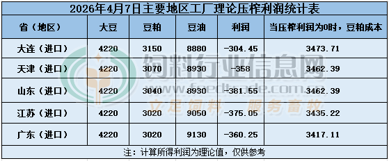 2026年4月7日大豆壓榨利潤日報
