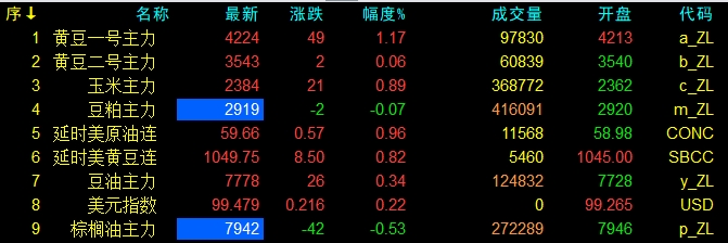 5月7日大連盤開盤動態及美盤動態