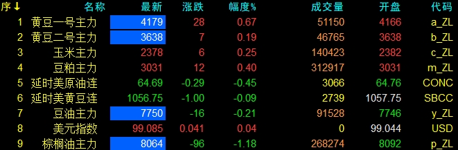 6月11日大連盤開盤動態及美盤動態