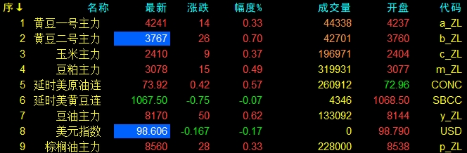 6月20日大連盤開盤動態及美盤動態