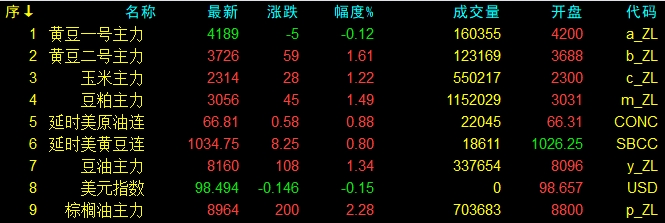 7月18日大連盤收盤動態及美盤動態