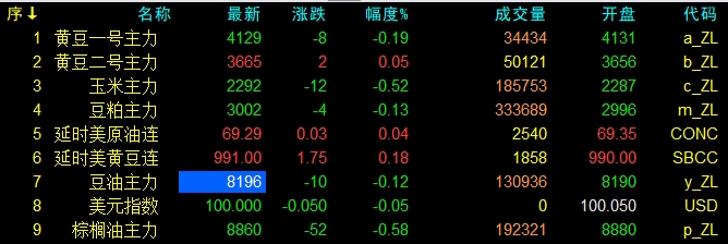 8月1日大連盤開盤動態及美盤動態