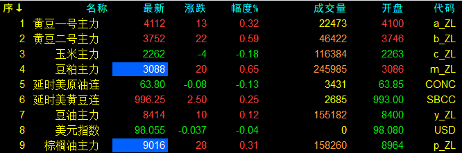 8月8日大連盤開盤動態及美盤動態
