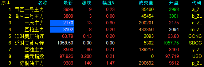 8月25日大連盤開盤動態及美盤動態