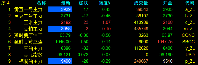 8月28日大連盤開盤動態及美盤動態