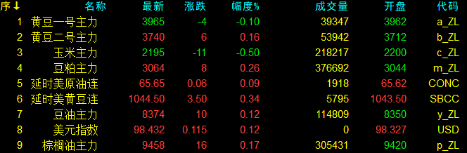 9月3日大連盤開盤動態及美盤動態