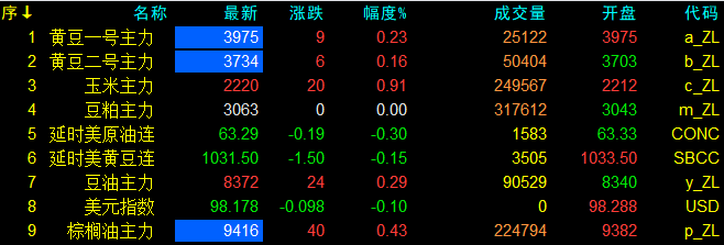9月5日大連盤開盤動態及美盤動態