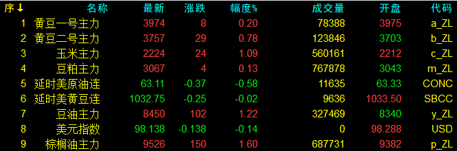 9月5日大連盤收盤動態及美盤動態