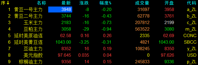 9月15日大連盤開盤動態及美盤動態