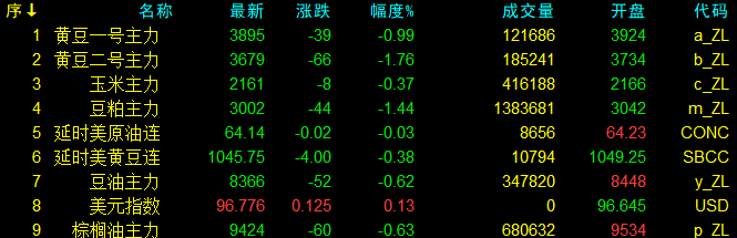 9月17日大連盤收盤動態及美盤動態