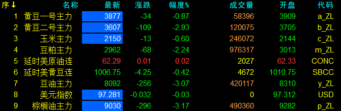 9月23日大連盤開盤動態及美盤動態