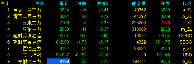 9月29日大連盤開盤動態及美盤動態