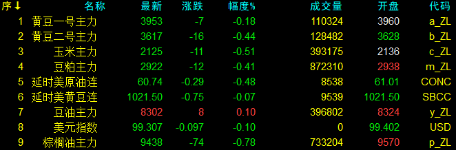 10月10日大連盤收盤動態及美盤動態