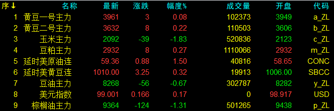 10月13日大連盤收盤動態及美盤動態