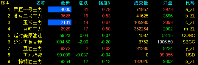 10月15日大連盤開盤動態及美盤動態