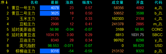 10月21日大連盤開盤動態及美盤動態