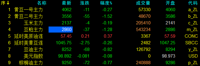 10月22日大連盤開盤動態及美盤動態