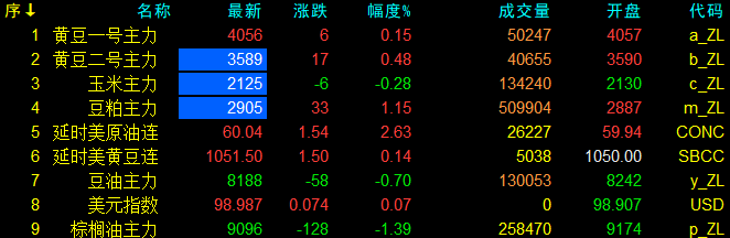 10月23日大連盤開盤動態及美盤動態