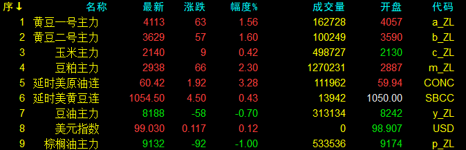 10月23日大連盤收盤動態及美盤動態