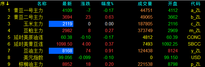 10月30日大連盤開盤動態及美盤動態