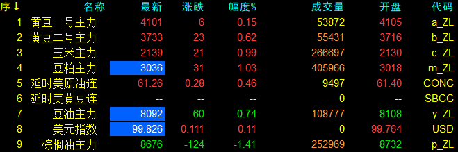 11月3日大連盤開盤動態及美盤動態
