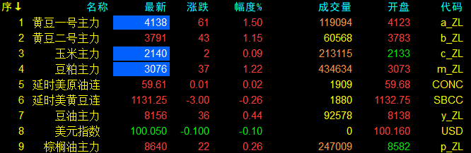 11月6日大連盤開盤動態及美盤動態