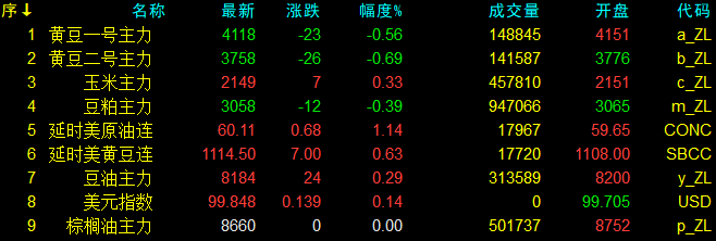 11月7日大連盤收盤動態及美盤動態