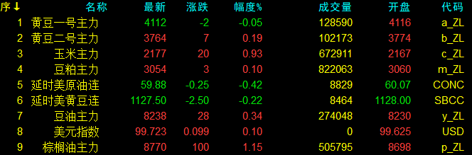 11月11日大連盤收盤動態及美盤動態